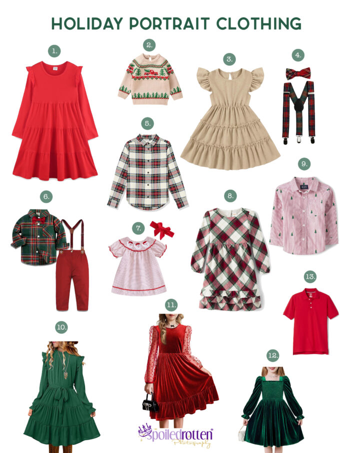 We have gathered a list of clothing items for girls and boys that we think will look amazing on our upcoming Holiday set.